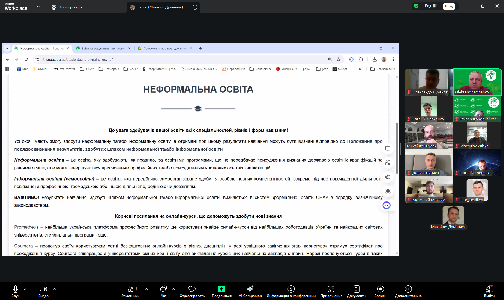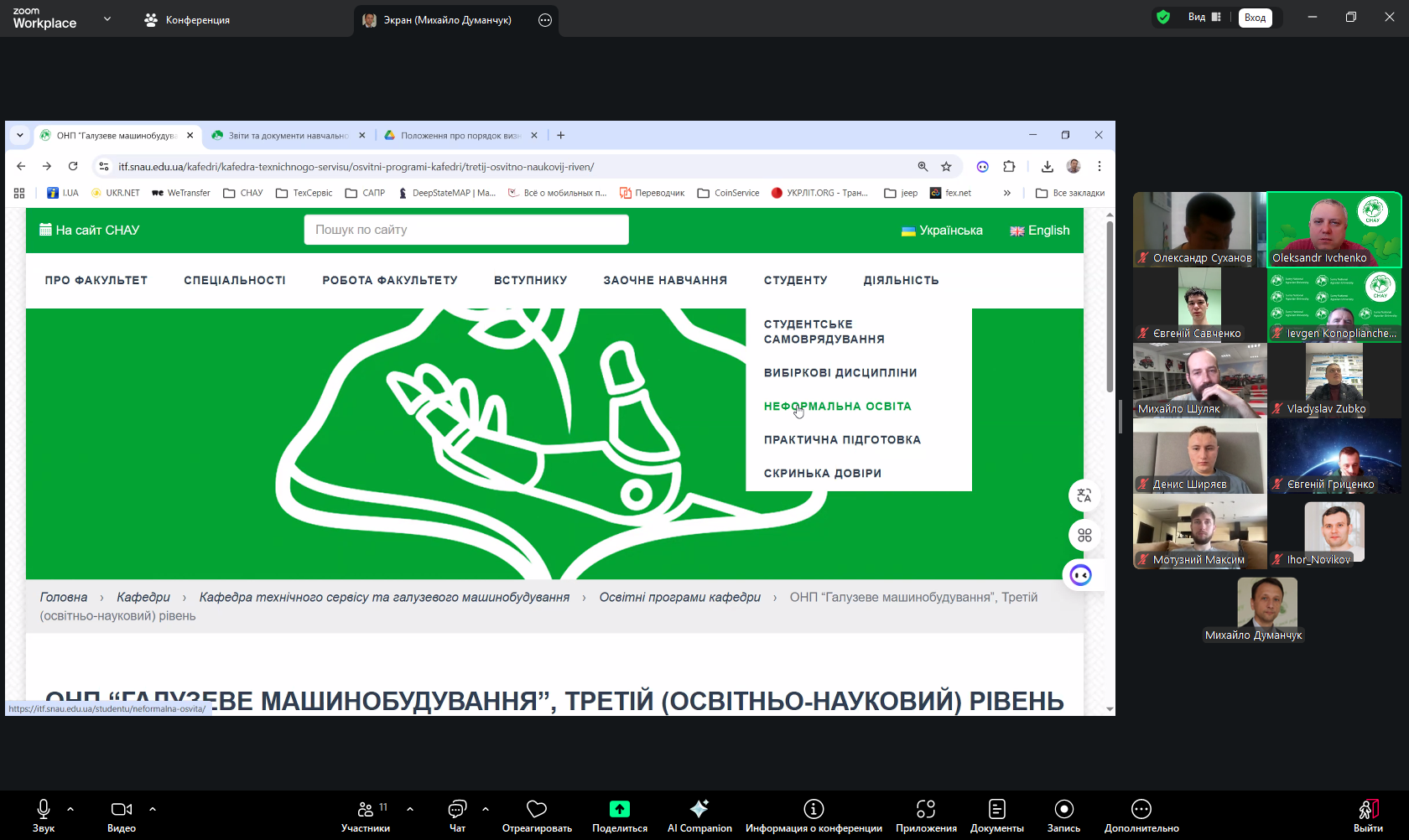 Під час зустрічі аспірантів було поінформовано про основні положення нормативної бази, що регламентує організацію освітнього процесу на третьому рівні вищої освіти в СНАУ. Окрему увагу приділено питанням формування індивідуальної освітньої траєкторії здобувачів, а також можливостям розширення освітнього досвіду через різні форми навчання.
