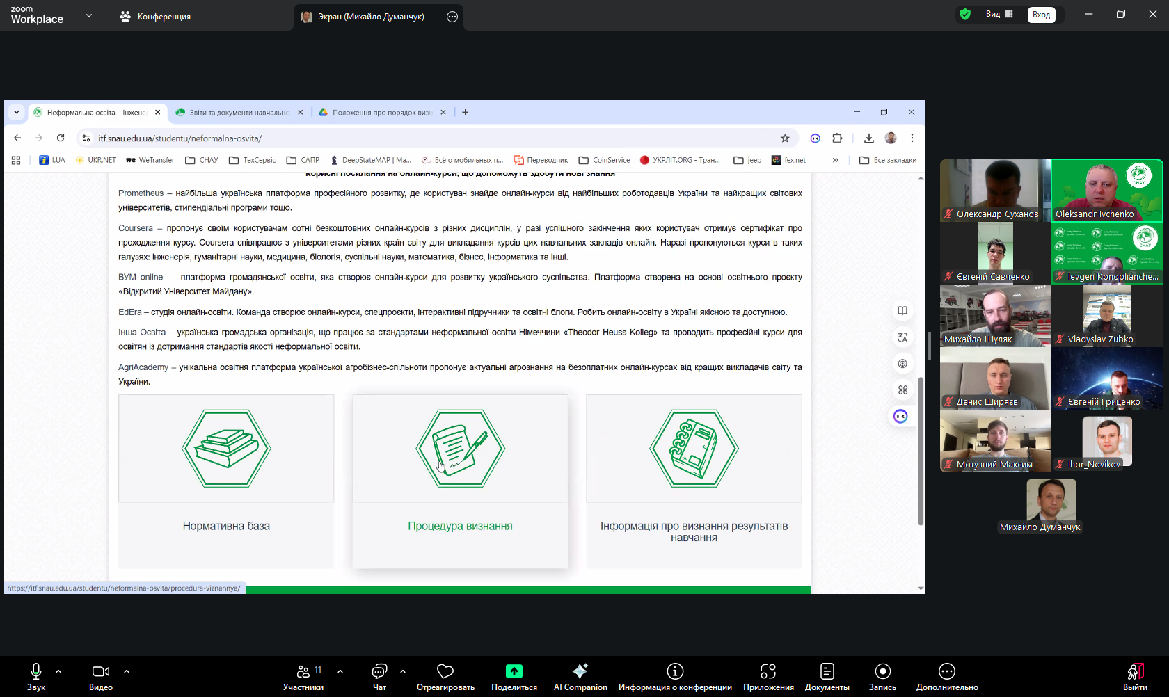 Здобувачам було роз’яснено можливості та порядок визнання результатів навчання, отриманих у межах неформальної та інформальної освіти, а також результатів, здобутих під час академічної мобільності на інших освітніх програмах або в інших закладах вищої освіти. Учасники зустрічі отримали вичерпну інформацію щодо процедур подання відповідних документів та умов зарахування таких результатів у межах освітньої програми.