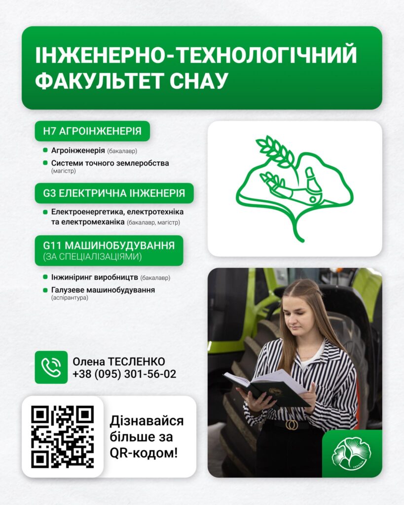 Інженерно-технологічний факультет СНАУ — це поєднання практики, інновацій і реальних можливостей для професійного зростання.