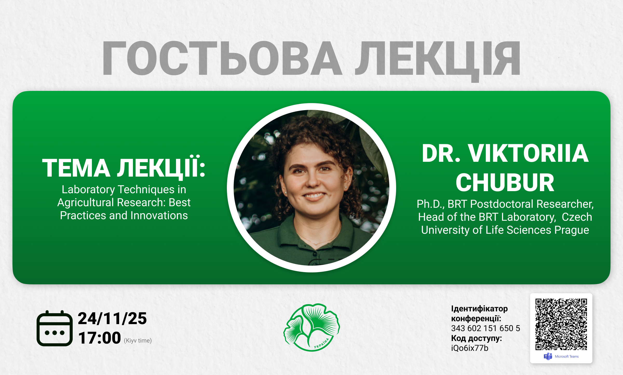 Лекція проводиться в рамках проєкту «Платформа AgriSci-UA: зміцнення дослідницького потенціалу та поглиблення співпраці між українськими університетами в галузі аграрних наук».