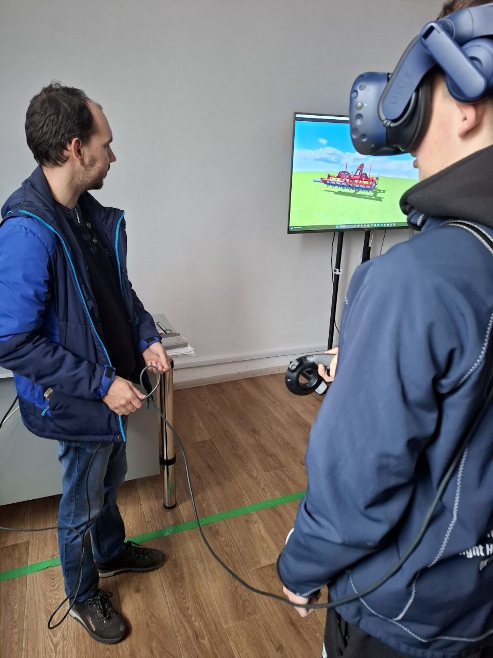 Доцент кафедри “Агроінжинірингу” Богдан САРЖАНОВ продемонстрував сучасну сільськогосподарську техніку з дистанційним керуванням, яка використовується для виконання різних агротехнологічних процесів. Особливе захоплення в учнів викликала можливість спробувати себе у віртуальній реальності, де вони змогли відчути процес роботи з сучасним обладнанням.
