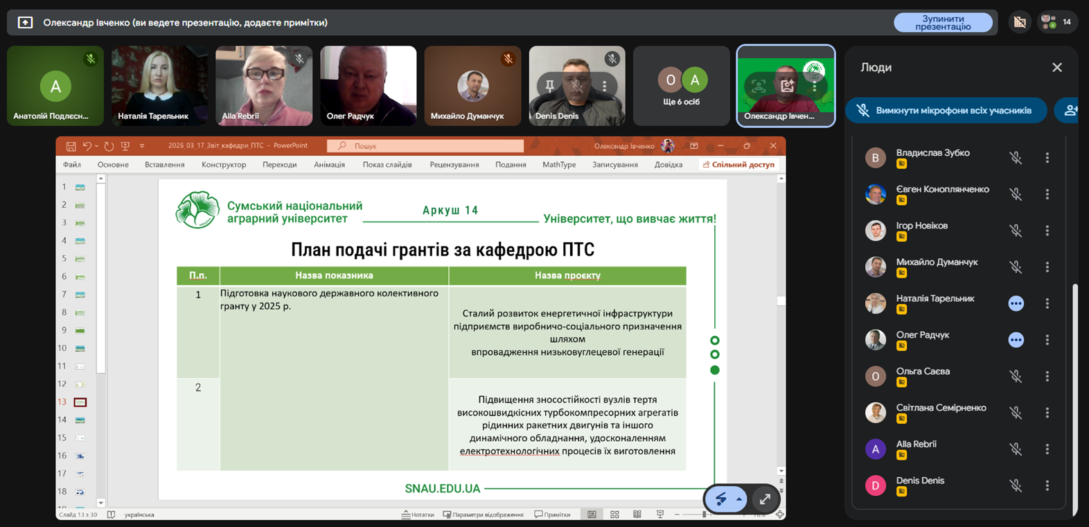 Завершуючи захід, доцент Олександр ІВЧЕНКО наголосив про те, що науково-педагогічні працівники кафедри планують подати на відповідний конкурс в колаборації з: