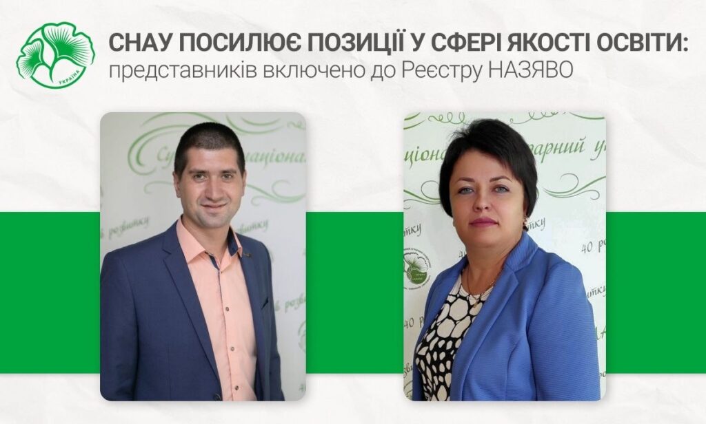 Включення представників СНАУ до Реєстру експертів НАЗЯВО є свідченням високого рівня професійної компетентності науково-педагогічних працівників університету та довіри до їх експертного потенціалу на національному рівні.