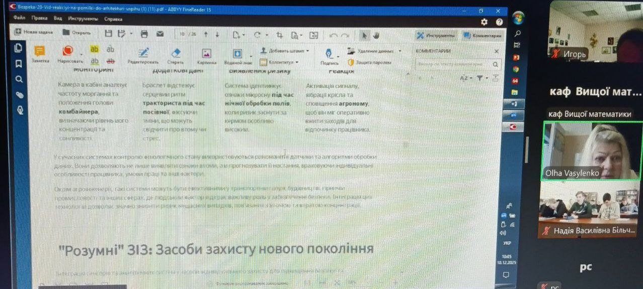 Для коледжів Сумського НАУ відбулася онлайн гостьова лекція к.т.н., доцента кафедри «Вищої математики, фізики та охорони праці» Ольги ВАСИЛЕНКО на тему «Безпека 2.0: Як технології та нові підходи змінюють охорону праці».