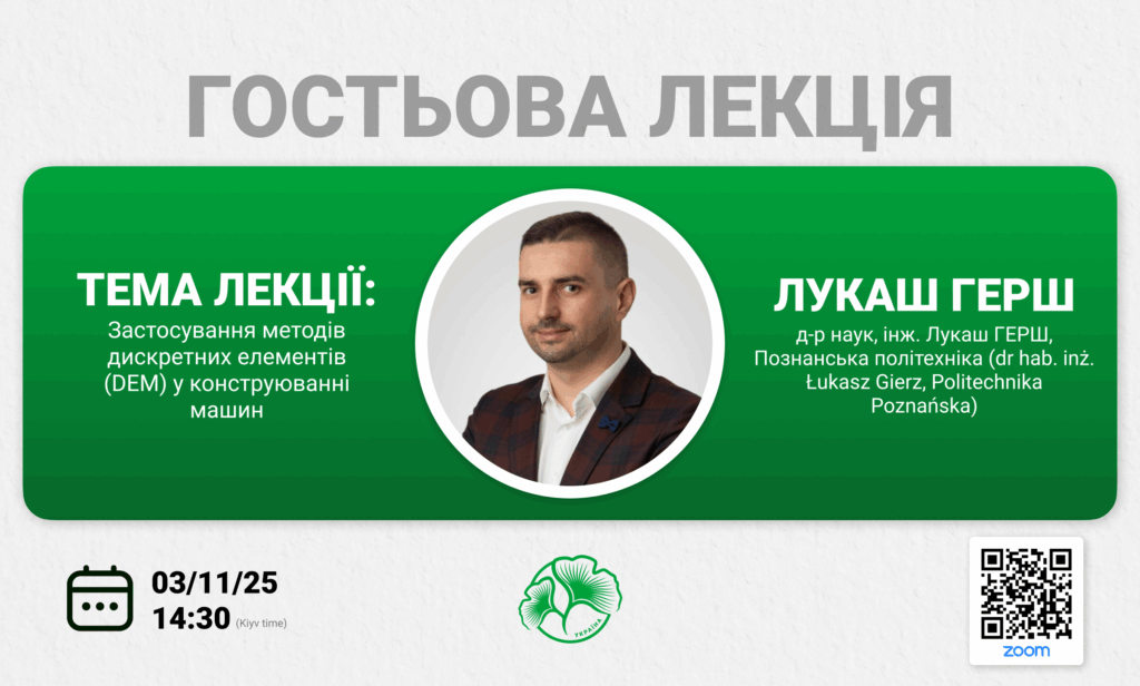 03 листопада 2025 року об 14:30 відбудеться відкрита лекція на тему «Застосування методів дискретних елементів (DEM) у конструюванні машин»!