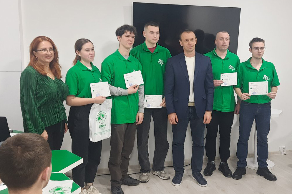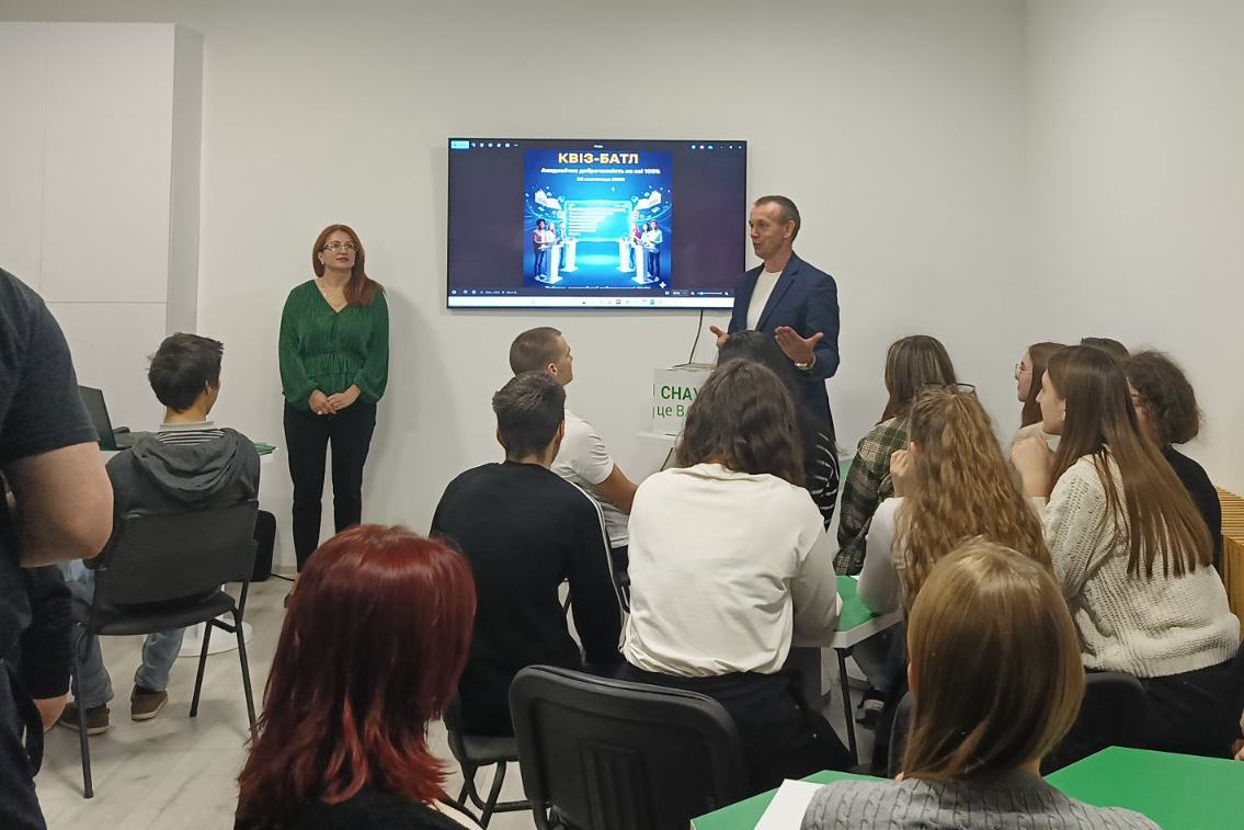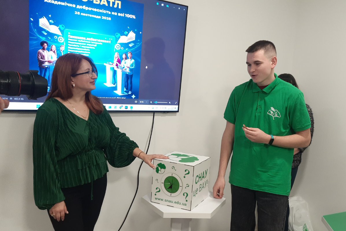 25 листопада 2025 року команда здобувачів від інженерно-технологічного факультету (Данііл ПЕТРУСЕНКО, Євгеній САВЧЕНКО, Олег ПІСКОВИЙ, Людмила МИХНО, Олександр ГРУЦЬ) долучилися до щорічного квіз-батлу «Академічна доброчесність на всі 100%» серед здобувачів факультетів, який продовжив заходи Тижня академічної доброчесності в СНАУ. Захід уже став доброю традицією нашого університету, тож і цього року зібрав найактивніших та найкмітливіших учасників, які демонстрували не лише свої знання, а й уміння працювати в команді, швидко мислити та зберігати холодний розум у запеклій боротьбі.