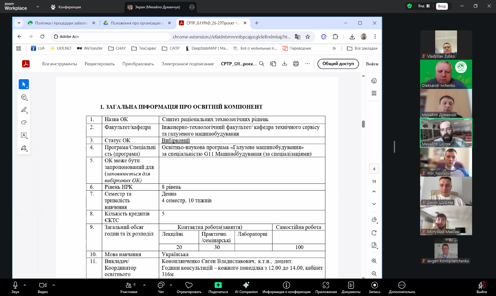 Гарант ОНП повідомив, що у цьому році відбулися зміни щодо розміщення анотацій вибіркових ОК, замість них були розміщені проєкти силабусів, що викликано необхідністю виправити недолік який був виявлений при акредитаційній експертизі. Було продемонстровано де знаходяться силабуси та надано пояснення щодо їх змісту (викладачі презентували свої ВК).